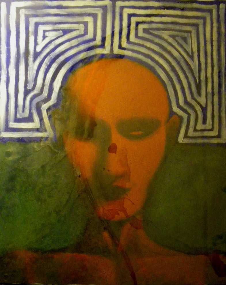 Il y a deux manières de voir ce tableau, une comme quelqu’un qui se prend la tête et une comme si le ciel devenait mon cerveau, en fait je pense que c’est un peu des deux. J’étais dans une période très psychédélique