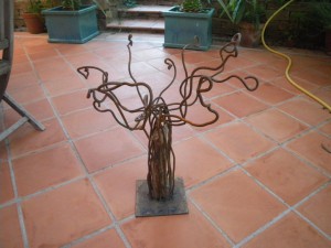 Métal et bois Posted on 1 décembre 2011 Enlacement d’un bout de bois par de l’acier, avec reconstruction d’une charpente organique. Acier, bois, H60cm, 2009